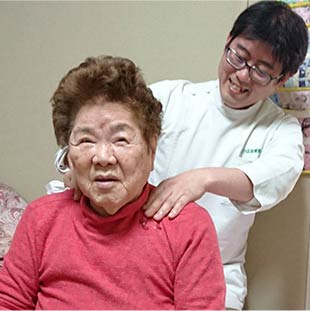 筋肉をやわらかく、関節の動きを良くし、筋力の低下を防ぎ、床ずれの予防につなげます。また、立ち上がりや歩行の訓練により身体機能を向上させます。寝たきりの方でも衣服の着脱、トイレの動作、おむつ交換などが楽になります。